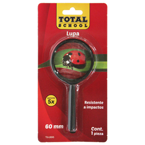 Código: 1594020 Marca: Total School Modelo: TS-L60X3 Diámetro: 6cm Unidad de venta: PiezaEspecificaciones Uso Observar, ampliar los detallesColor Negro/plata Aumento5 x Unidad de medida/Presentación Pieza/Blíster Tamaño de diámetro 6 cm Código de barras 75022801619..