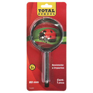 Código: 1594021 Marca: Total School Modelo: TS-L80X3 Diámetro: 8cm Unidad de venta: PiezaEspecificaciones Uso Observar, ampliar los detallesColor Negro/plata Aumento3 x Unidad de medida/Presentación Pieza/Blíster Tamaño de diámetro 8 cm Código de barras 75022801619..