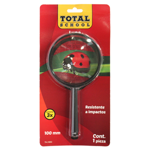 Código: 1594022 Marca: Total School Modelo: TS-L100X3 Diámetro: 10cm Unidad de venta: PiezaEspecificaciones Uso Observar, ampliar los detallesColor Negro/plata Aumento3 x Unidad de medida/Presentación Pieza/Blíster Tamaño 10 cm Código de barras 7502280161943 ..