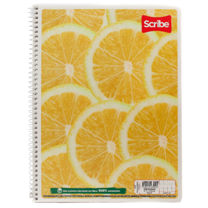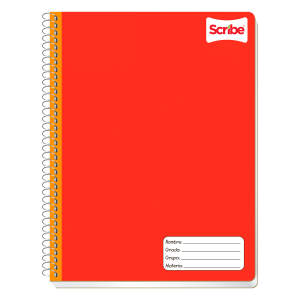 Cuaderno de la marca Scribe, pasta semirígida y espiral metálico sencillo, portada con barníz máquina, hecho con fibras 100% sustentables. EspecificacionesUsoEscribir, anotar, apuntarColorVariosMaterialPapel bondUnidad de medida/PresentaciónPiezaFormaProfesionalNúmero de hojas100 hojasInteriorCuadro grande (C7)Tipo de encuadernadoEspiralC..