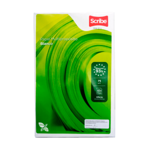 Papel bond de la marca Scribe, multipropósito, elaborado con celulosa sustentable para trabajos cotidianos y de uso general.EspecificacionesUsoImpresión, copiado, escrituraColorBlancoUnidad de medida/PresentaciónPieza/CajaTamaño/MedidaOficio (21.6 x 34 cm)Gramaje75 g/m2Blancura93% blancuraContenido por resma500 hojasContenido por caja10 resmasCódig..