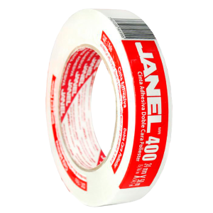 Cinta adhesiva de la marca Janel, fuerte adhesivo que permite fijar placas, forrar libro e instalar alfombras, resistente al calor. Ideal para la industria, el hogar y la oficina.EspecificacionesUsoMontaje, unir, fijarColorTransparenteMaterialPoliésterAdhesivoHule resinaUnidad de medida/PresentaciónPiezaDispensador incluidoNo incluidoLongitud50 mAn..