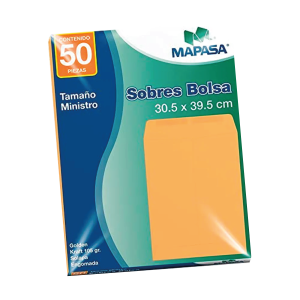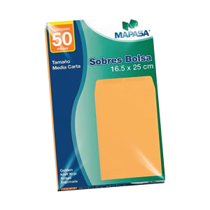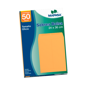 DESCRIPCIÓNCódigo: 643307 Marca: Mapasa Modelo: IA0317 Medida del sobre: 26 X 34 cm Color: Amarillo Gramaje: 90g/m2 Cerrado del sobre: Solapa engomada Unidad de venta: PiezaEspecificaciones Uso Guardar,conservar documentosColor Amarillo Material Manila Unidad de medida/presentaciónPaquete Contenido 50 pz..