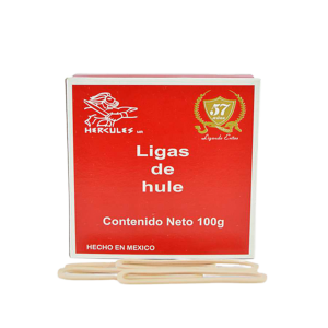 Ligas de la marca Águila, de hule natural, presentación en caja, usos múltiples, resistente y práctica.EspecificacionesUsoSujetar, asegurar, agruparColorNaturalMaterialHuleUnidad de medida/PresentaciónCajaTamaño/Medida#18 (7.5.x 0.5 cm)Contenido100 grsCódigo de barras7501636703202..