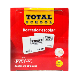 Código: 1613003 Marca: Total School Modelo: TS-60 Color: Blanco Tinta que borra: Lápiz Material: Plástico Unidad de venta: Pieza c/60Especificaciones UsoElimina trazos erróneos Color Blanco MaterialPlástico Tipo Bloque Unidad de medida/PresentaciónPieza/caja Contenido 60 pzTinta que borra Lápi..