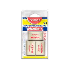 Código: 4321003 Marca: Maped Modelo: 108611 Tipo de borrador: Bloque Color: Beige Material: Migajón Unidad de venta: PiezaEspecificaciones UsoElimina trazos erróneos Color Beige MaterialMigajón Tipo Bloque Unidad de medida/PresentaciónPieza/paquete Contenido3 pzCódigo de barras31..