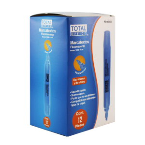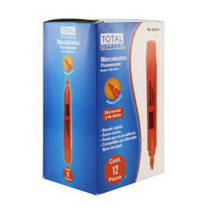 Marca textos de la marca Total Office, con punta tipo cincel que no se deforma, tinta brillante compatible con diferentes tipos de papel, lo que te permite resaltar tus textos con confianza. No es tóxica, seca de manera rápida y fácil de quitar en caso de mancharte.EspecificacionesCertificacionesISO 9001, ISO 9001-2000UsoResaltar, señalar, mar..
