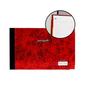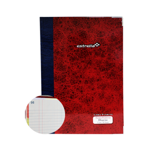 Libro diario de la marca Estrella, de alta calidad, lomo resistente, pasta dura y esquinas reforzadas con puntas metálicas para mayor duración. EspecificacionesUsoAnotar, registrar operaciones diariasColorRojoMaterialPapel bondUnidad de medida/PresentaciónPiezaFormaFrancesaNúmero de hojas96 hojasInteriorRayasCódigo de barras602760001022..