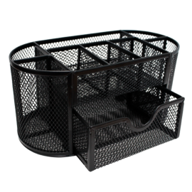 Organizador de la marca Total Office, fabricado en malla metálica resistente, diseño elegante de bordes lisos, 7 secciones para clasificar y organizar diversos objetos. Resistente y duradero.EspecificacionesCertificacionesISO 9001, ISO 9001-2000UsoOrganizar, ordenar, guardar ColorNegroMaterialMalla metálicaUnidad de medida/Presentaci..
