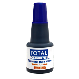 Tinta para sello de la marca Total Office, color intenso y duradero, secado rápido, base glicerina. Su aplicación con sistema de gotero evita derrames.EspecificacionesCertificacionesISO 9001, ISO 9001-2000UsoPara sellosColorAzulMaterialBase glicerinaUnidad de medida/PresentaciónPiezaContenido24 mlCódigo de barras7502315710214..