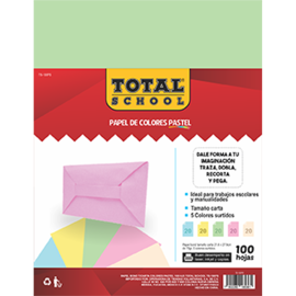 Código: 1612003 Marca: Total School Modelo: TS100PS Tamaño: Carta Hojas: 100 Terminado: Liso Color: Surtido Pastel Unidad de venta: Paquete c/100 &n..