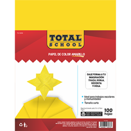 Código: 1612004 Marca: Total School Modelo: TS-100AM Tamaño: Carta Hojas: 100 Terminado: Liso Color: Amarillo Unidad de venta: Paquete c/100 ..