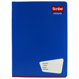 Cuaderno de la marca Scribe engrapado, de pasta suave colores divertidos y etiqueta para identificación de datos. Dos grapas en el lomo para sujetar bien las hojas. Hecho con fibras 100% sustentables.EspecificacionesUsoEscribir, anotar, apuntarColorVariosMaterialPapel bond de 50 g/m2Unidad de medida/PresentaciónPiezaFormaFrancesaNúmero de hoja..