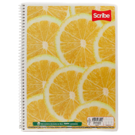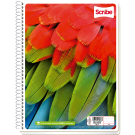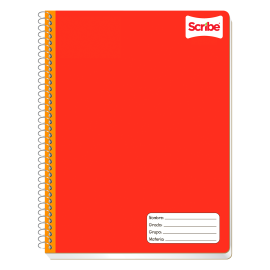 Cuaderno de la marca Scribe, pasta semirígida y espiral metálico sencillo, portada con barníz máquina, hecho con fibras 100% sustentables.EspecificacionesUsoEscribir, anotar, apuntarColorVariosMaterialPapel bondUnidad de medida/PresentaciónPiezaFormaProfesionalNúmero de hojas100 hojasInteriorRayaTipo de encuadernadoEspiralCódigo de barras75061..