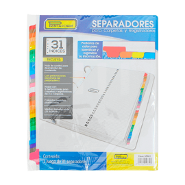Código: 2412020 Marca: Printaform Modelo: 2412020 Tamaño: Carta Color: Multicolor Material: Cartón No. de divisiones: 31 Perforaciones: 5 Unidad de venta: JuegoEspecificaciones Uso &nb..