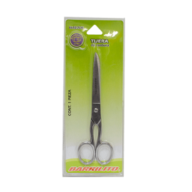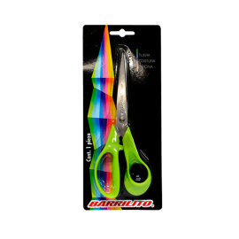 Tijera de la marca Barrilito, con mango de plástico y hojas gruesas de acero inoxidable, para diversos tipos de papel o tela. Puede usarse en el hogar, y la oficina.EspecificacionesUsoCortar, separar, dividirColorVariosMaterialPlástico/Acero inoxidable Unidad de medida/PresentaciónBlíster c/1Tamaño/Medida 17.78 cm (7")Tipo de puntaPunta d..