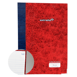 Código: 625160 Marca: Estrella Modelo: 113 Tipo: Actas No. de hojas: 144 hjs Interior: Raya Unidad de venta: PiezaEspecificaciones Uso Anotar, registrar hechos e informes.Color Rojo MaterialPapel bondUnidad de medida/presentación Pieza Tipo Acta Numero de hojas 144 hjsInterior Raya Código de ba..