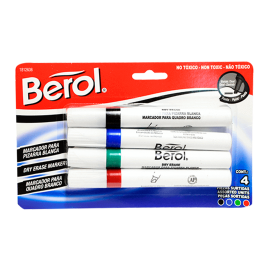 MARCADOR P/PIZARRON SURTIDO BASICO C/4 BEROL BLISTER 1812636 NEWELL