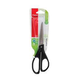 Tijera de la marca Maped, ergonómica, de metal y plástico, hojas de acero inoxidable, anillos elaborados con 75% de plástico reciclado.Especificaciones UsoCortar, separar, dividirColorNegroMaterialPlástico/Acero inoxidableUnidad de medida/PresentaciónBlíster c/1Tamaño/Medida15.5 cm (6 3/4")Tipo de puntaPunta delgadaCódigo de barras315414468010..
