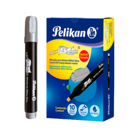 Marcador permanente de la marca Pelikan, punta cincel para trazos finos, medianos y gruesos, a prueba de agua, funciona en la mayoría de las superficies. Con casquillo ventilado para evitar el secado.EspecificacionesUsoRotular, señalar, marcarColorNegroMaterialPlásticoUnidad de medida/PresentaciónPiezaTipo de tintaBase alcoholTipo de puntaCincelTóx..