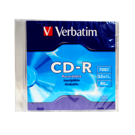 Disco de la marca Verbatim, presentación en caja slim, con tintes que permiten grabar en un tiempo máximo de 2 minutos. Ideal para almacenar música, fotos digitales y mucho mas. Disco para una única grabación.EspecificacionesUsoAlmacenar, guardar informaciónColorPlataMaterialPolicarbonatoUnidad de medida/PresentaciónCaja slimTipo de disco..