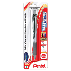 Bolígrafo de la marca Pentel, diseño triangular que le impide rodar, barril con destellos e indicador de color de tinta, grip libre de látex para mayor comodidad al escribir.EspecificacionesUsoEscribir, anotar (escuela, oficina)ColorNegroMaterial del barrilPlásticoUnidad de medida/PresentaciónPieza/CajaTipo de puntaMedianoTipo de tintaGelRetráctilS..