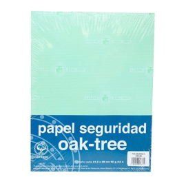 Papel seguridad de la marca Oak Tree, con tinta fugaz sensible a la goma de borrar, marca de agua de identificación. Ideal para pagarés o documentos de alta seguridad.EspecificacionesUsoIdentificar, proteger, autenticarColorVerde claroUnidad de medida/PresentaciónPiezaTamaño/MedidaCarta (21.6 x 27.9 cm)Gramaje90 grContenido100 hojasCódigo de barras..