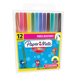 Código: 3091023 Marca: PaperMate Modelo: 2049489 Color de la tinta: Surtido Tipo de punta: Fina Tipo de tinta: Base agua Tóxico: No Tinta resistente a correrse: Sí Lavable: Sí Unidad de venta: Paquete c/12Especificaciones UsoEscribir, diseñar, colorear,remarcar.Color de tintaSurtido Tipo de tintaBase agua Color de barrilSurtido&..