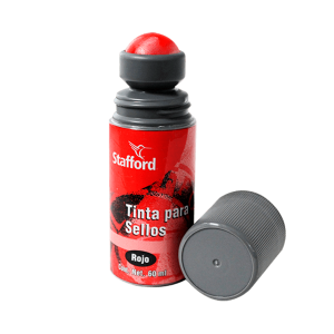 Tinta para sello de la marca Stafford, tinta base agua que ayuda a imprimir sellos brillantes, nítidos y de secado rápido, envase tipo roll-on que evita derrames de la tinta.EspecificacionesUsoPara sellos, cojinesColorRojoMaterialBase aguaUnidad de medida/PresentaciónPiezaContenido60 mlCódigo de barras7501449715034..