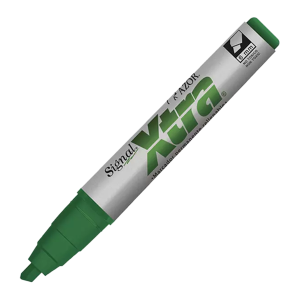 Marcador permanente de la marca Azor, punta cincel para trazos delgados y gruesos, tinta base alcohol de secado rápido y resistente al agua. Puede marcar en vidrio, madera, tela, plástico, etc.EspecificacionesUsoRotular, señalar, marcarColorVerdeMaterialPlásticoUnidad de medida/PresentaciónPiezaTipo de tintaBase alcoholTipo de puntaCincel..