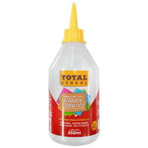 Código: 1597009 Marca: Total School Modelo: TS-SL250 Removible: Sí Tóxico: No Lavable: No Contenido neto: 250 ml Color: Transparente Unidad de venta: PiezaEspecificaciones Uso Pegar, unir,adherir Tipo Liquido Color Transparente Unidad de medida/Presentación Pieza Contenido 250 ml Código de barr..