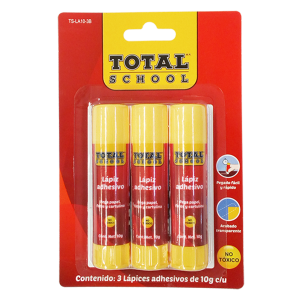 Código: 1597004 Marca: Total School Modelo: LA10-3B Permanente: Sí Tóxico: No Lavable: Sí Contenido neto: 10gr Color: Blanco Libre de ácidos: Sí Unidad de venta: Pieza C/3Especificaciones Uso Manualidades, pegar, unir ColorBlanco Unidad de medida/PresentaciónBlisterContenido 3 pzContenido del adhesivo10 gTóxico&nb..