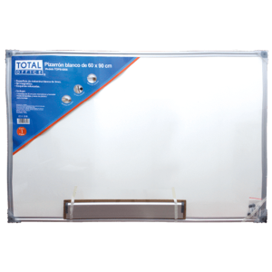 Pizarrón de la marca Total Office, superficie de melamina blanca para borrado en seco, con esquinas reforzadas y bandeja para marcadores y borrador. Incluye accesorios para montaje vertical u horizontal.EspecificacionesCertificacionesISO 9001, ISO 9001-2000UsoAnotaciones, explicaciones, dibujos brevesColorBlancoMaterialMelaminaUnidad de medida..