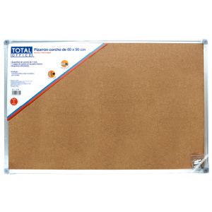 Pizarrón de la marca Total Office, superficie de corcho de 1 mm con 7 capas de cartón traseras, esquinas reforzadas y bandeja para marcadores y borrador. Incluye accesorios para montaje vertical u horizontal.EspecificacionesCertificacionesISO 9001, ISO 9001-2000UsoPegado y sujeción de chinchetas, notas, apuntesColorCaféMaterialCorcho/CartónUni..