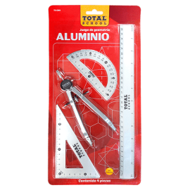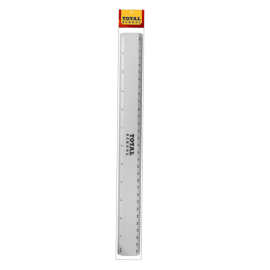 Regla de la marca Acme, de aluminio, ligera y resistente, bordes en centímetros y pulgadas.