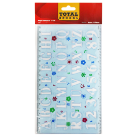 REGLA PLASTICO C/PLANTILLA 22 CM TOTAL SCHOOL BOLSA TS-PLN22