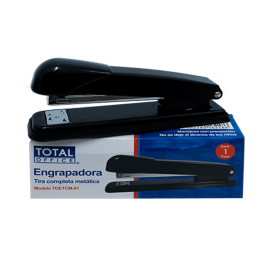 Engrapadora de la marca Total Office, de tira completa con cuerpo de metal, ideal para uso rudo. Utiliza grapas estándar y se abre para engrapar superficies facilitando el trabajo. Especificaciones CertificacionesISO 9001, ISO 9001-2000UsoRudo (Unir, agrupar hojas)ColorNegroMaterialMetalUnidad de medida/PresentaciónPiezaTamaño/Medida d..