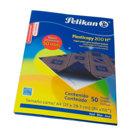 Papel carbón de la marca Pelikan, con tinta base cera para fijar la escritura al instante, dorso encerado, permite duplicar escritos manuales y mecanográficos.