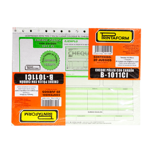 Block cheque póliza de la marca Printaform, amplio espacio para datos de cheque, concepto y datos particulares. Facilita el control y registro de pagos, permite garantizar y comprobar el pago efectuado con un cheque. EspecificacionesUsoComprobar, registrar pagosColorVerdeMaterialPapel bond/carbónUnidad de medida/PresentaciónPaquete c/25Ta..
