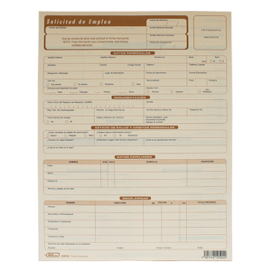 Block solicitud de empleo de la marca Printaform, sistema de registro de información completa con campos para correo electrónico, redes sociales y celular, impresa por ambos lados.EspecificacionesUsoComprobar, registrar pagosColorAmarilloMaterialPapelUnidad de medida/PresentaciónPaquete c/25TamañoCartaFormaFrancesaNúmero de copias1 copiaCódigo de b..