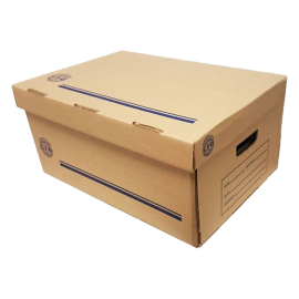 Caja de archivo de la marca Geo, de cartón (corrugado sencillo), resistente, tapa de solapa incluida y lateral impreso para colocar datos informativos.EspecificacionesUsoArchivar, almacenar, guardarColorCaféMaterialCartónUnidad de medida/PresentaciónPiezaTamañoOficioMedida50 cm x 35 cm x 25 cmCódigo de barras7501693012361..